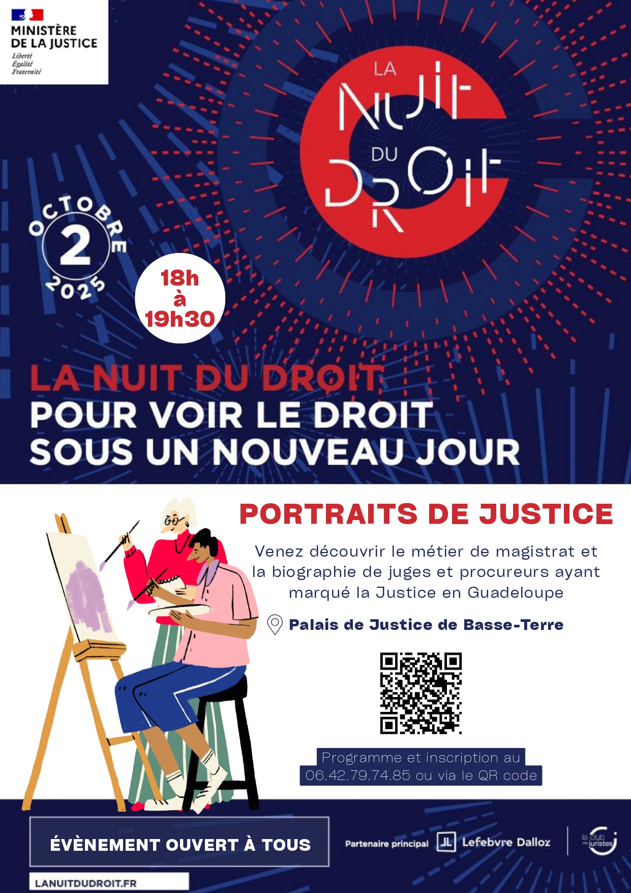 À l’occasion de la Nuit du Droit 2025, le jeudi 02 octobre, les chefs de Cour et de juridiction de Basse-Terre, en partenariat avec le CDAD de la Guadeloupe ont le plaisir de vous convier à une conférence sur des figures emblématiques de la justice en Guadeloupe, conférence sur des magistrats ayant marqué l’œuvre de la justice en Guadeloupe suivie d’un temps d’échange sur le métier de magistrat et la justice.