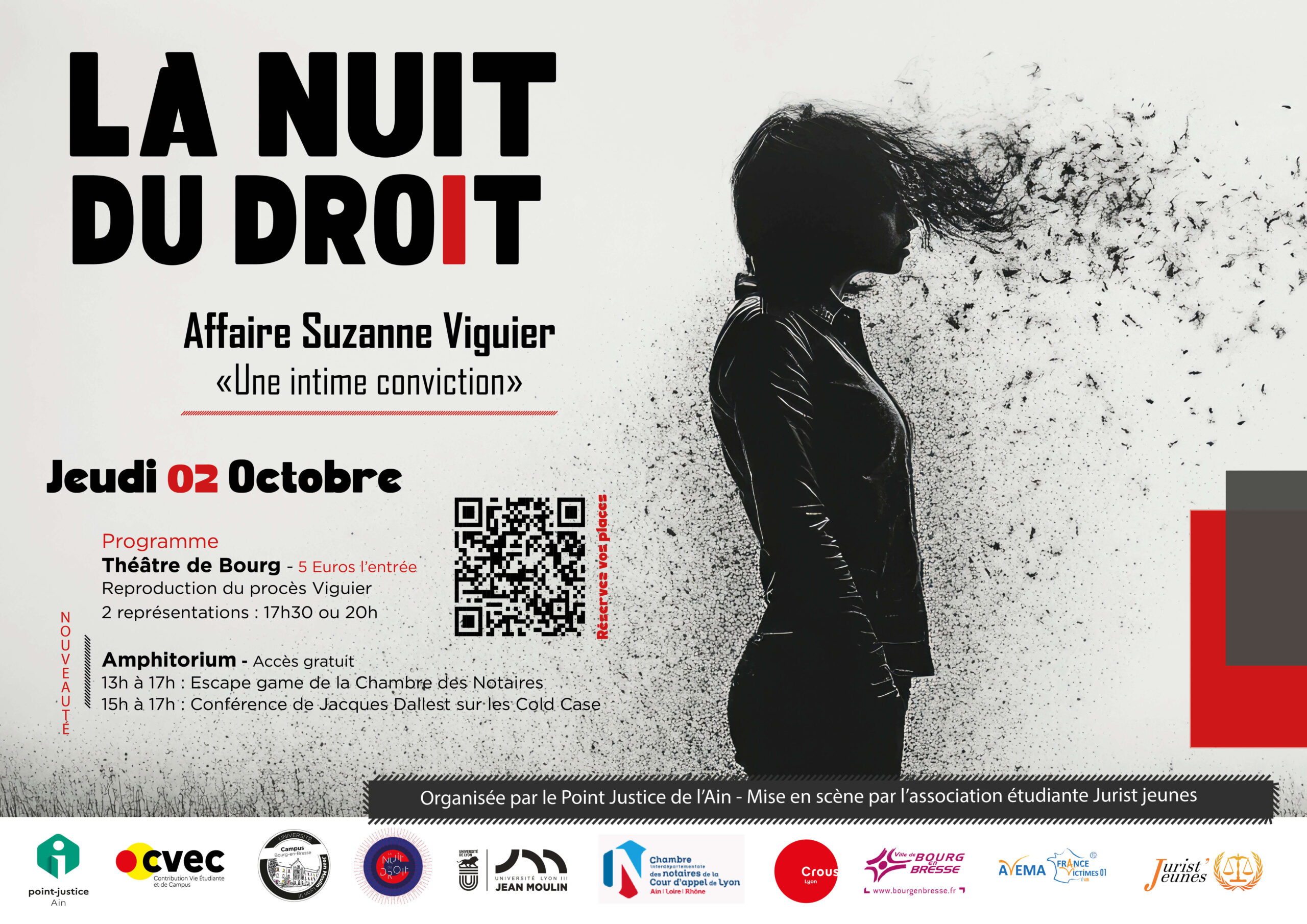À l’occasion de la Nuit du Droit 2025, le jeudi 02 octobre, le CDAD de l’Ain et l’ensemble des partenaires de cet événement vous proposent plusieurs activités, dont la désormais célèbre reconstitution de procès historique.