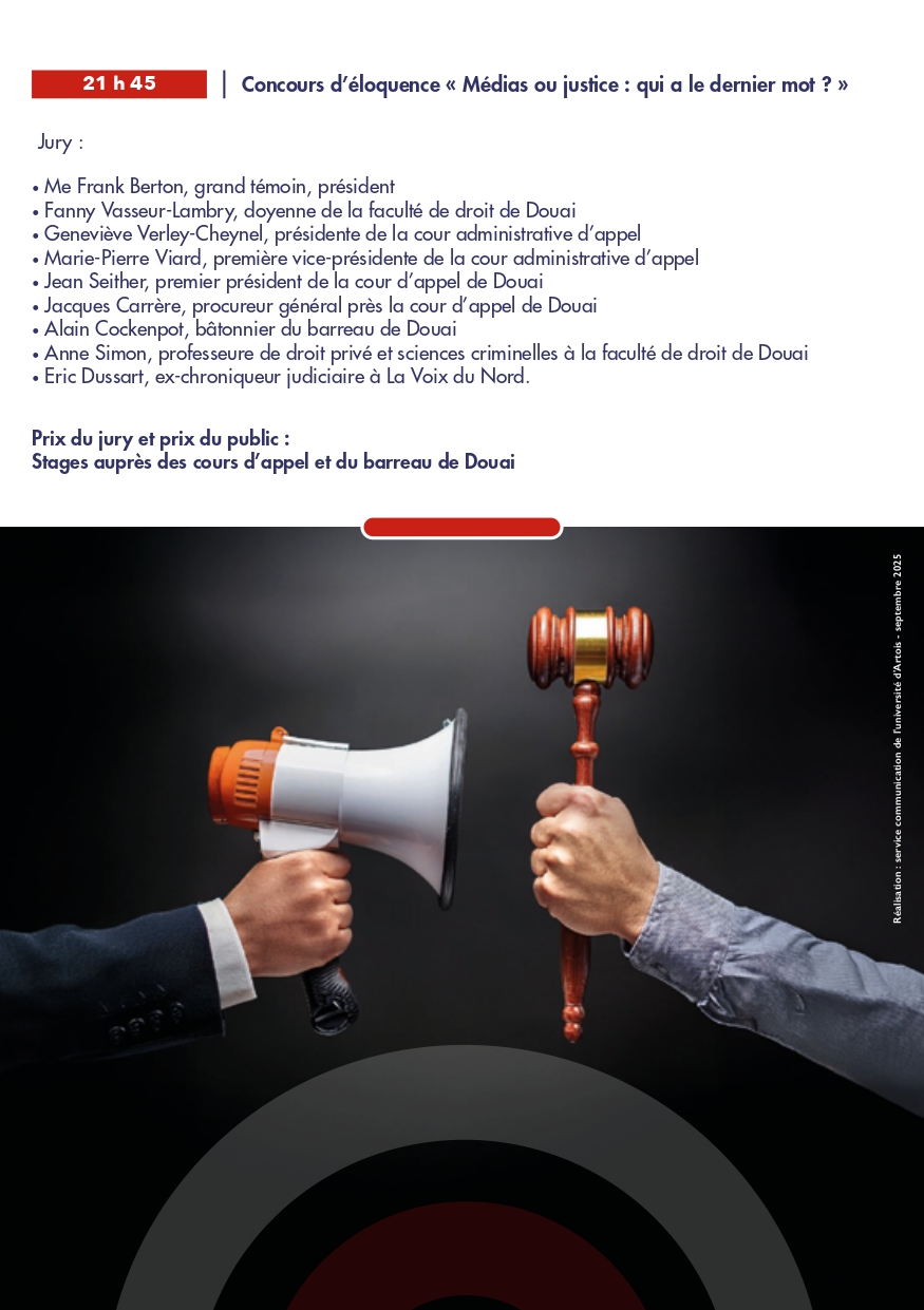 ♦ À 21h45 – Concours d’éloquence : « Médias ou justice : qui a le dernier mot ? »