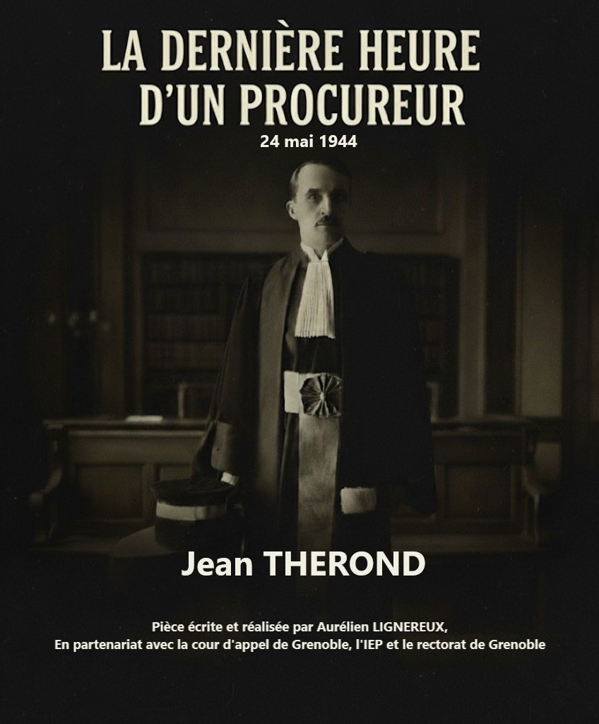 ◊ La dernière heure d’un procureur, 24 mai 1944 : Pièce de théâtre en mémoire de Jean Thérond, procureur de la République à Valence de 1937 à 1944, mort le 2 juillet 1944, lors de sa déportation vers le camp de concentration de Dachau.