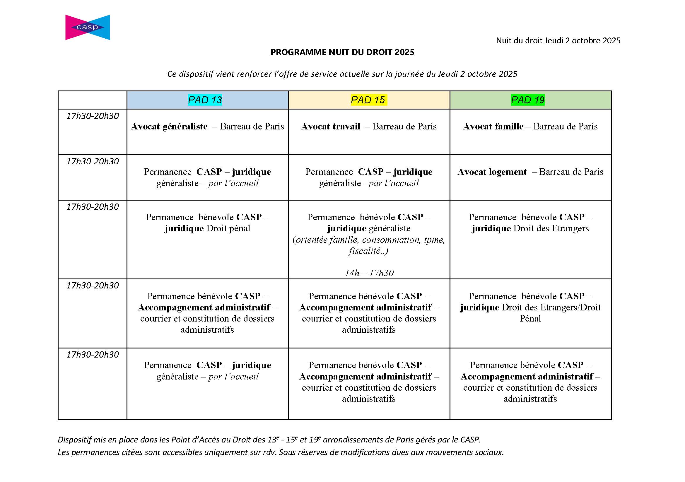 À l’occasion de la Nuit du Droit 2025, le jeudi 02 octobre, le Centre d’action sociale protestant (CASP) propose des permanences juridiques qui se dérouleront dans les Points d’Accès au Droit (PAD) des 13ème, 15ème et 19ème arrondissements de Paris.